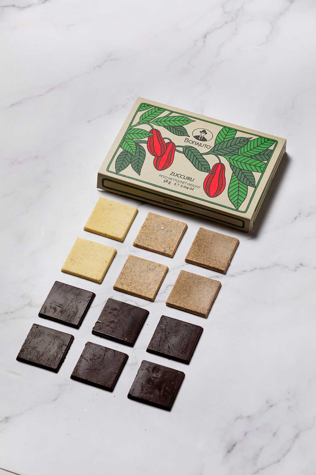 Zuccuru raccoglie in 12 cioccolatini le nostre proposte in cui lo zucchero è protagonista e “responsabile” di variazioni aromatiche.
